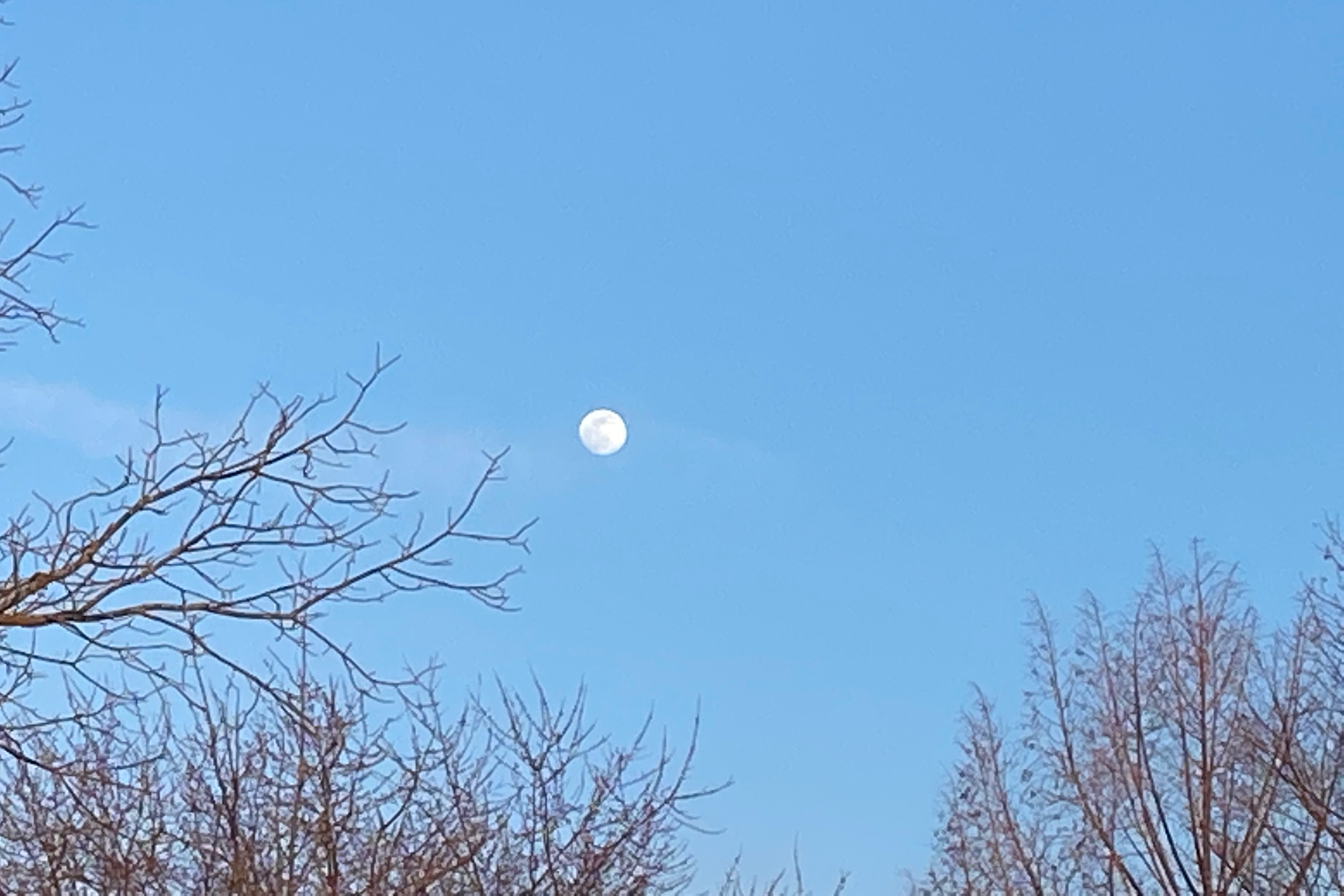 02/14/2022 - An early shot of the Moon taken on my phone during the day while walking to school.